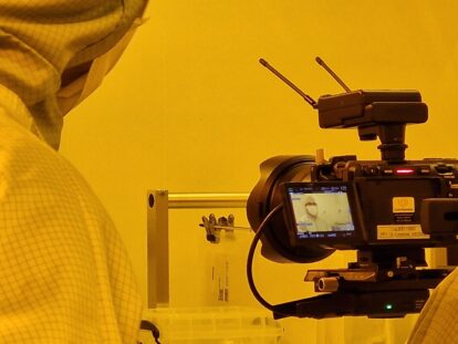 Doktorandin Paulami verbrachte wohl am meisten Zeit vor der Kamera: Sie trug im Gelblicht-Raum Fotolack auf, zeigte die Bedienung eines Messstandes, teilte ihre Erfahrungen und erzählte, wie wichtig Mikrosystemtechnik für die Gesellschaft ist. Juanita, Mitarbeiterin des Startup-Projektes mechIC am Lehrstuhl, sprach über ihr Studium und ihre jetzige Arbeit und erklärte, welche Voraussetzungen sie für Studierende sieht. mechIC-Mitarbeiter Philip hat ebenfalls einen Auftritt im Video.